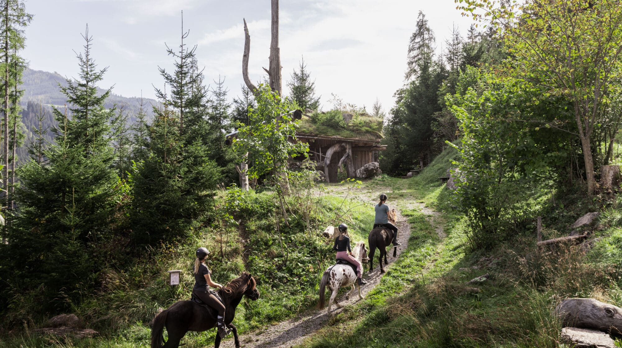 Gemeinsam mit euch reiten wir hinauf auf die idyllisch gelegene Heugathalm. Geübte ReiterInnen gehen mit unseren Islandpferden (und manchmal Haflingerdame Missy) vom Feriendorf durch den Wald bis auf 1.235 m, wo eine zünftige Jause und ein Spielplatz mit Streicheltieren warten. Der Ausritt für bis zu 4 Personen dauert ca. 4 Stunden, ist ab 14 Jahren geeignet und wird von Magdalena oder Elisa begleitet. Ein Erlebnis, das die einzigartige alpine Natur und die besondere Nähe zu den Pferden auf wunderbare Weise verbindet.